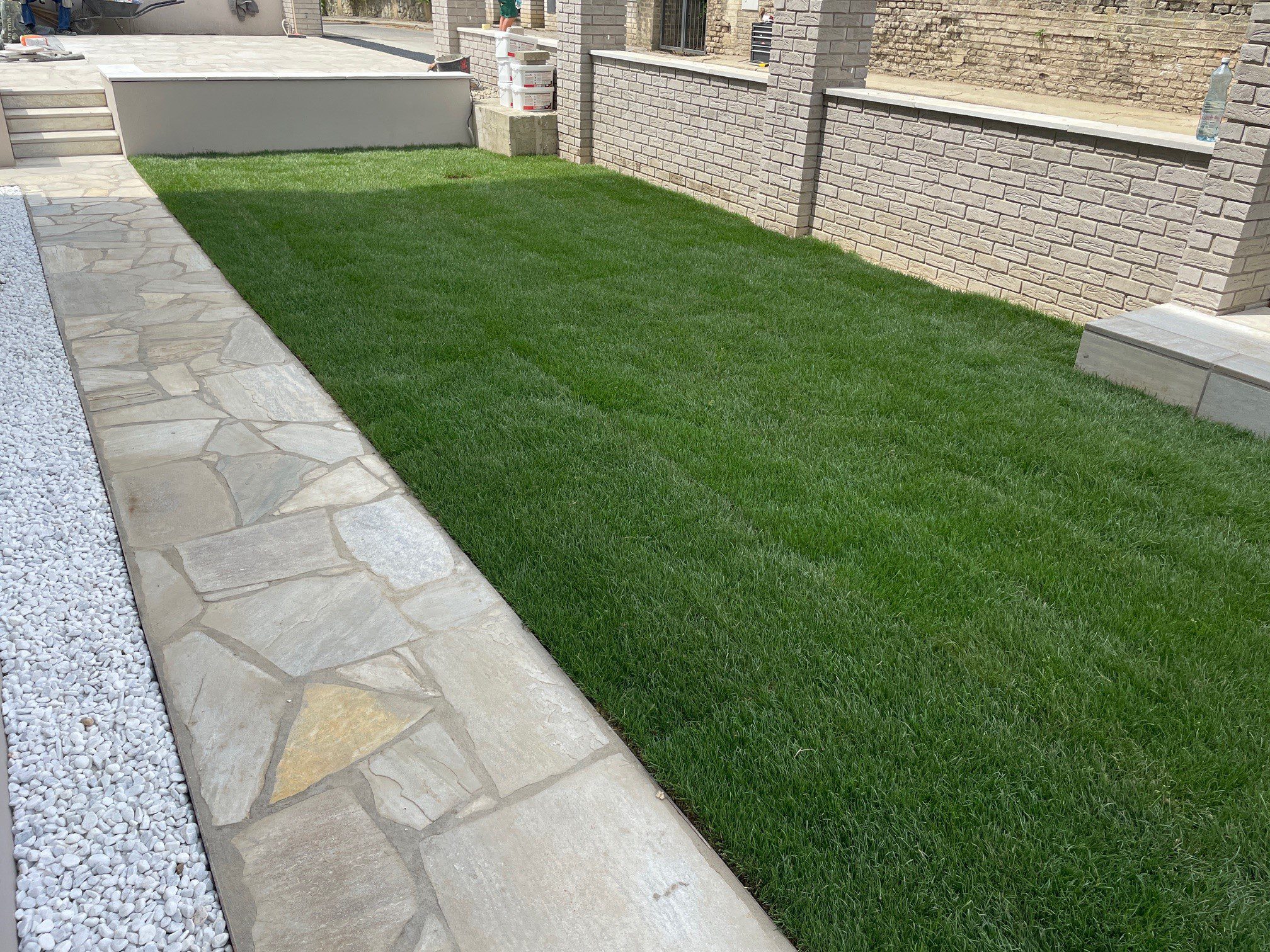 Granite road kerb with all sides cut, top sloping tanned. Timeless-durability-strength: granite pavers generally boast timeless elegance, exceptional strength and architectural versatility for use in any historic or contemporary design trend. These pavements and materials have surrounded us for hundreds of years. Installation in concrete. Use: exterior Hardy : YES