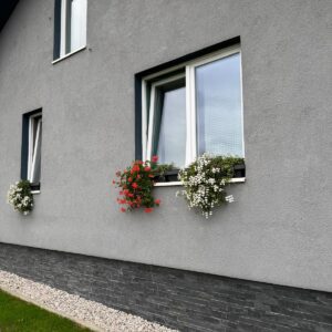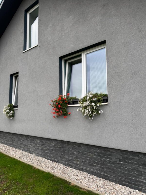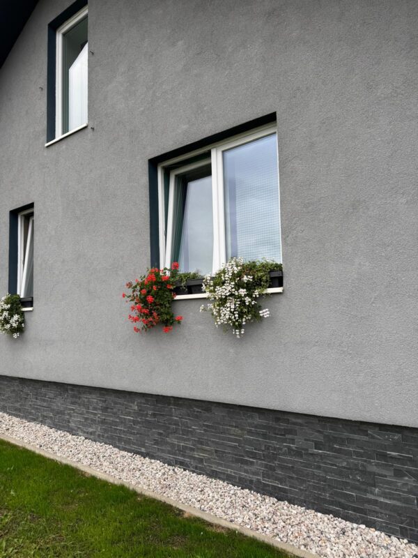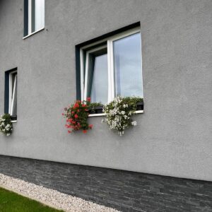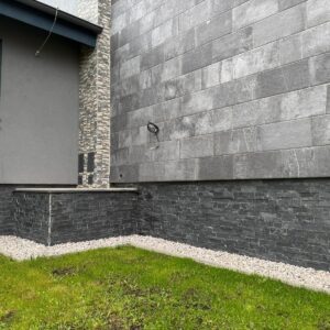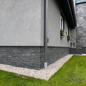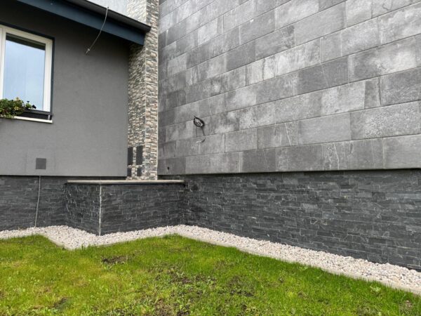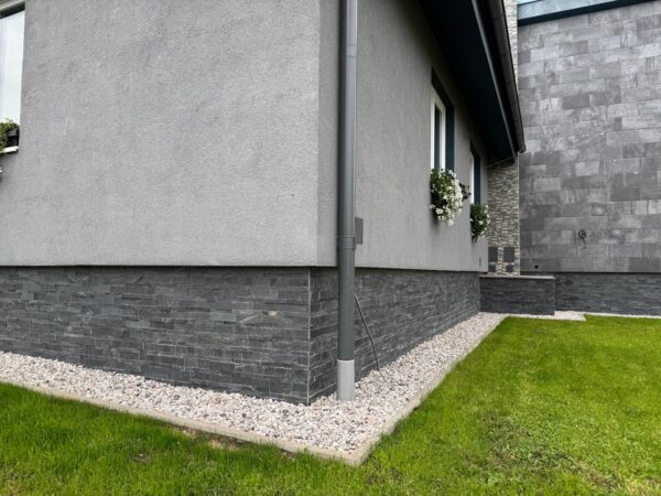 Obklad tvořený z břidlicových pásků, které jsou lepené pryskyřicí.